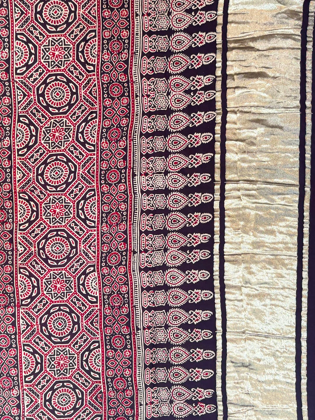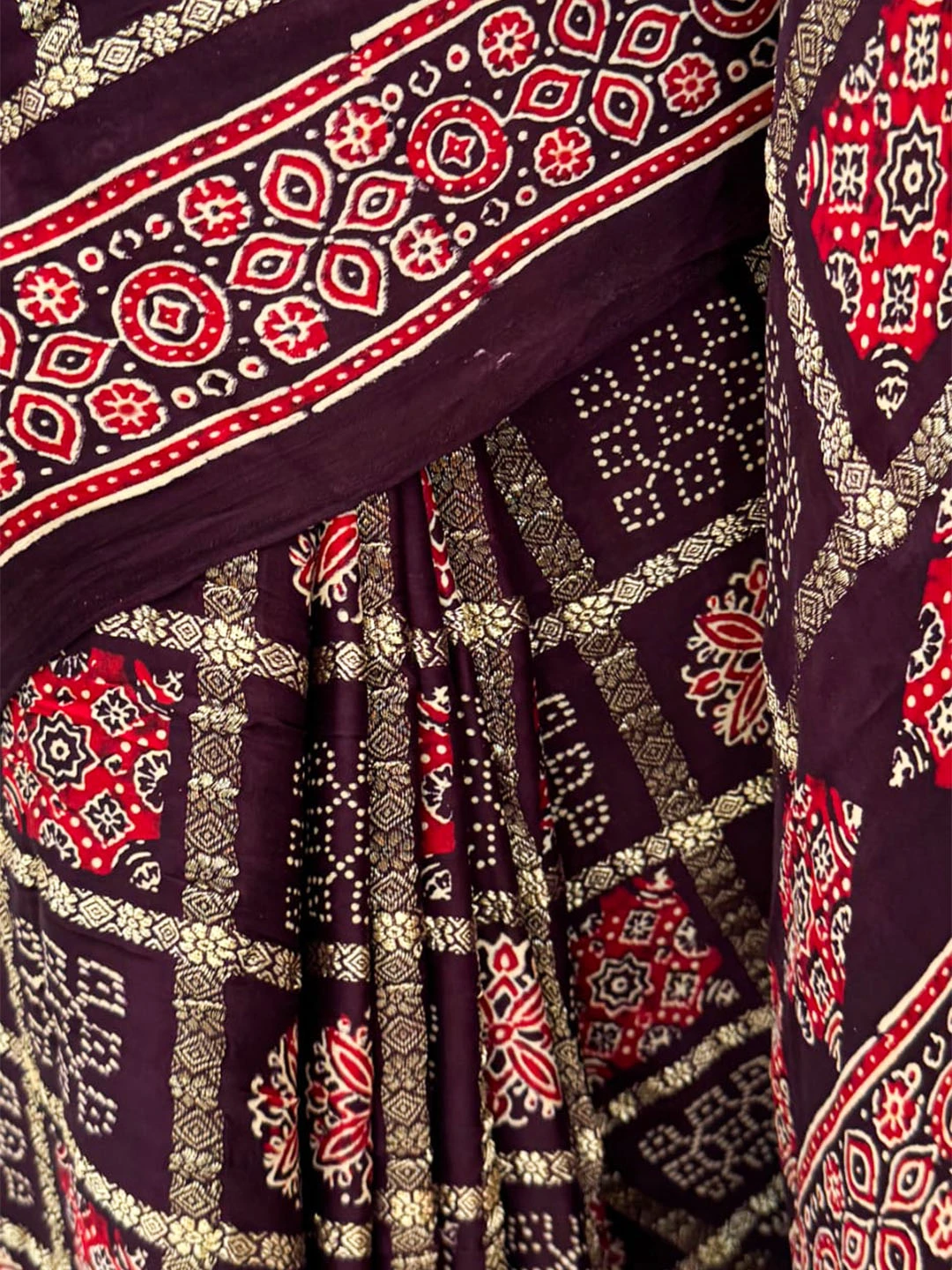 Ajarkh Printed Sarees - Wine Colour -QS211507