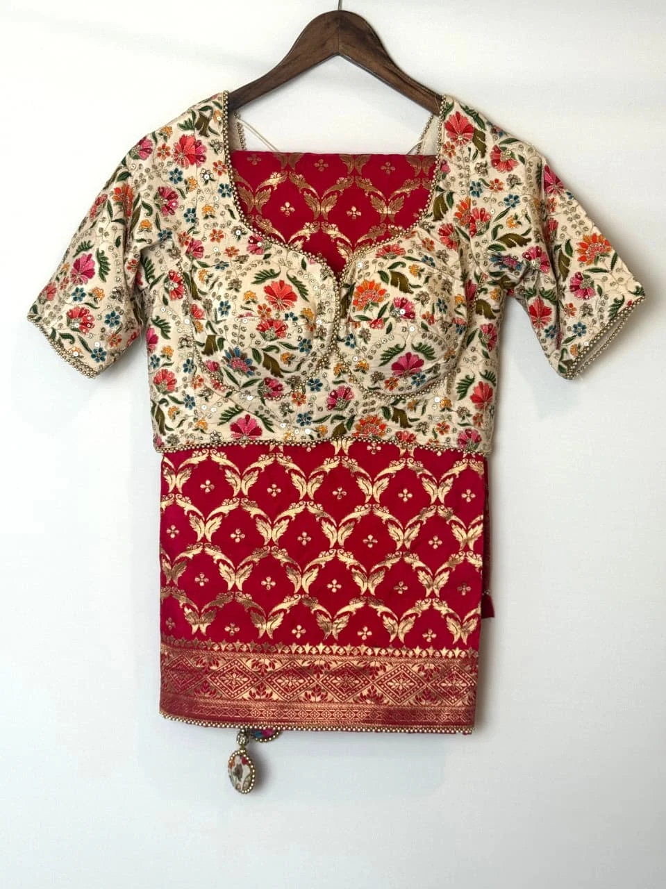 Banarasi Saree With Ready Blouse Red Colour QS262306