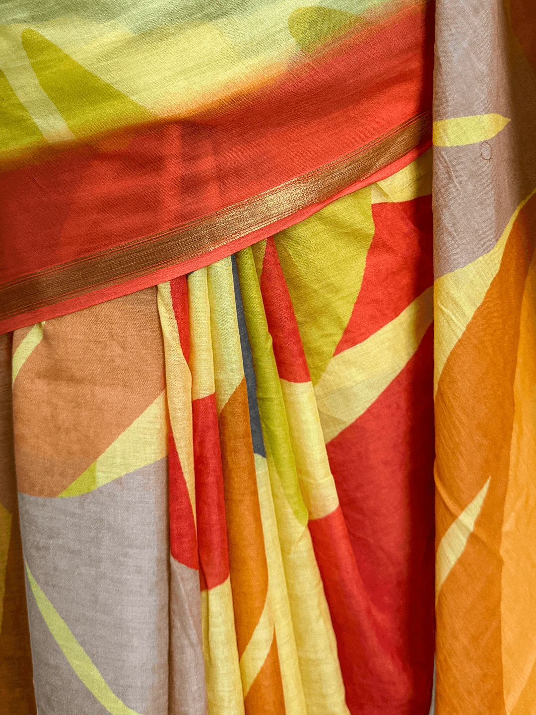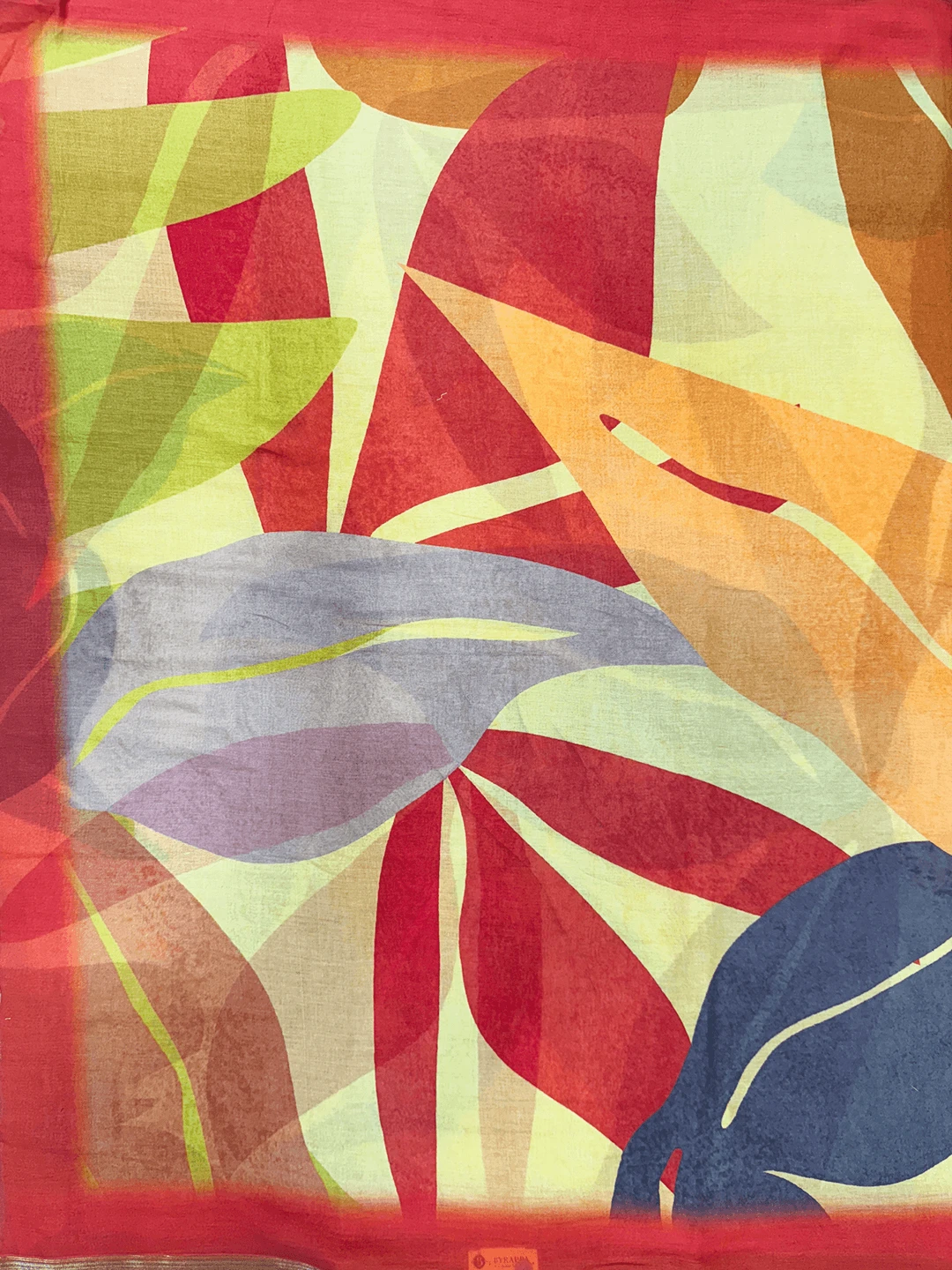 Fancy Printed (Aditya Birla Fabric saree)- Yellow & Red Colour - QS213549