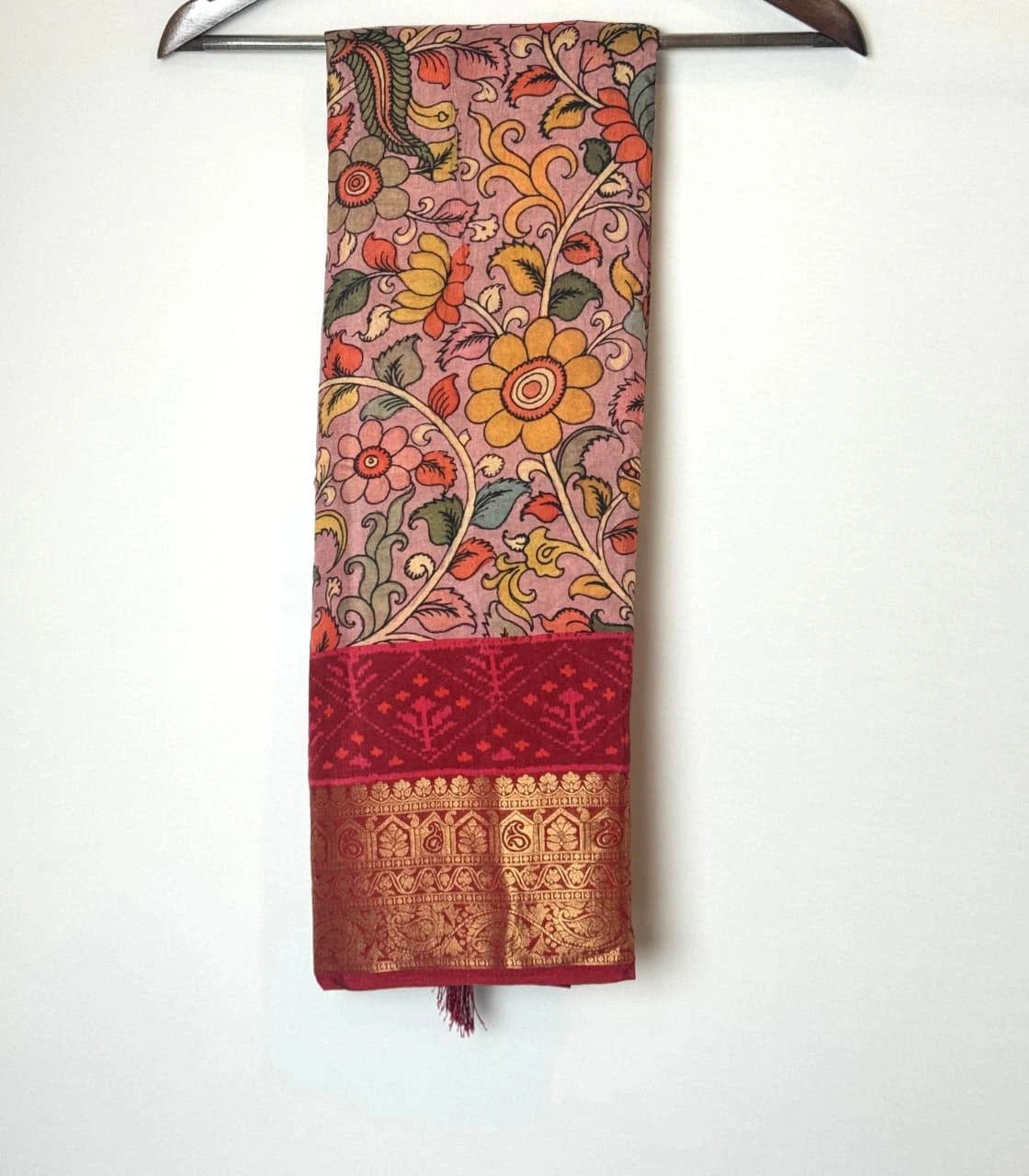 Kalamkari Orange Saree with Traditional Mythological Motifs₹1000₹1095
