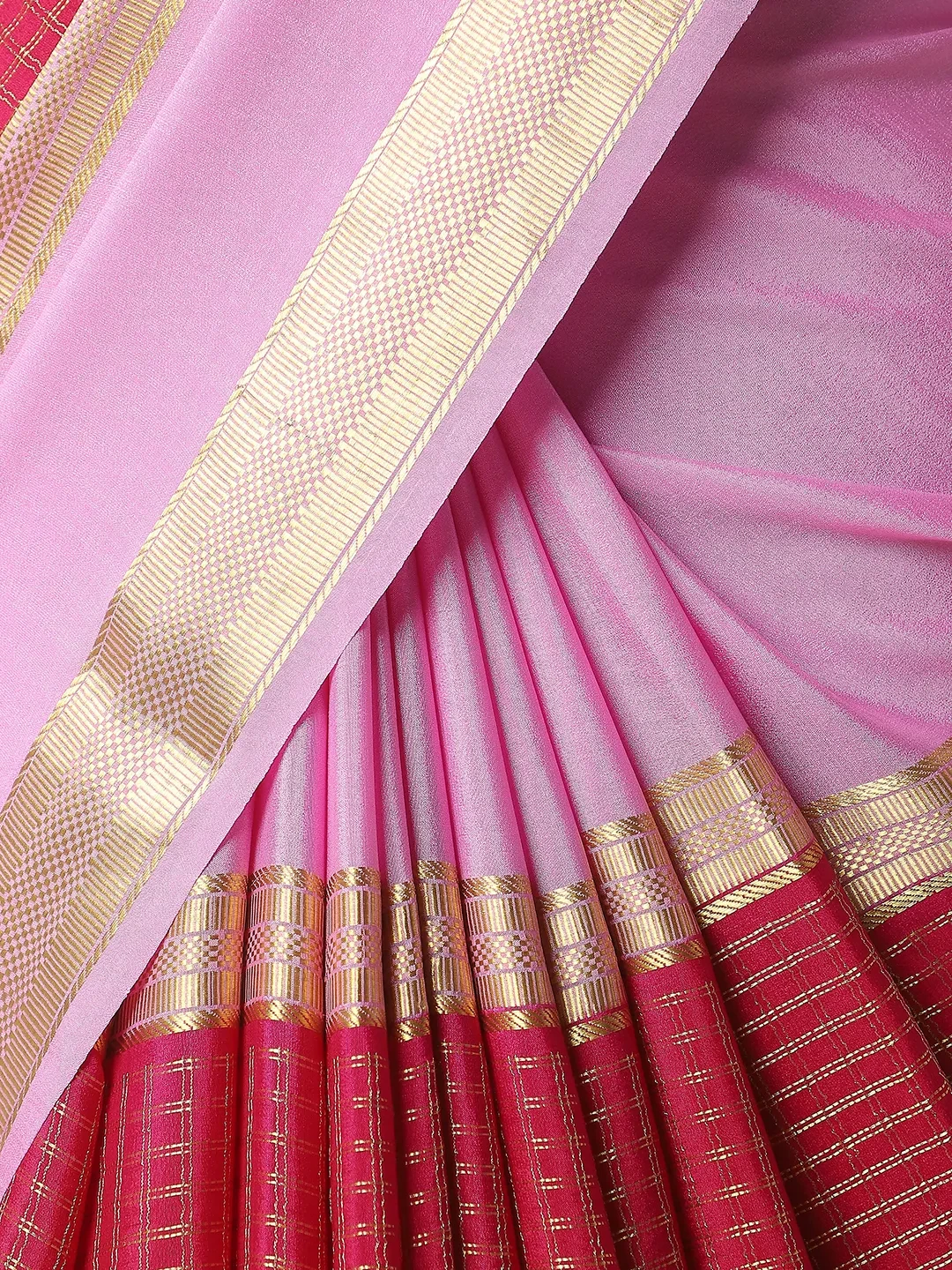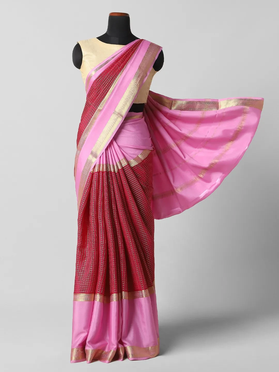 Pure Mysore Silk Saree Cherry Red & Pink Colour QA254160