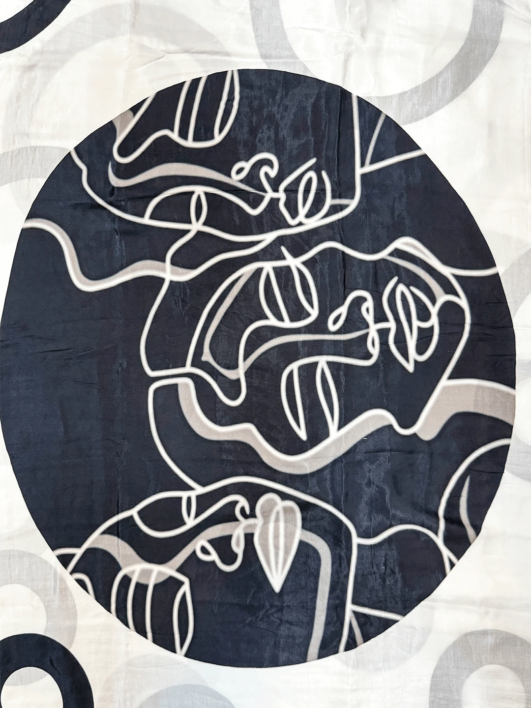 Satin Printed Aditya Birla Fabric - White & Black Colour - QS213523